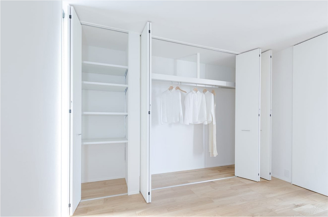 「piatto」の収納スペースは、家の約15%を占めています。一般的なマンションは6~7%なので、通常の2倍以上の広さです。 また、リビングの窓と窓の間の壁収納など、動線や使い勝手にも配慮されています。家具を運ぶときにも収納のことを考えなくていいので、インテリアをデザイン重視で決められるのもうれしいメリットです。 ※プランによって異なる場合もあります。